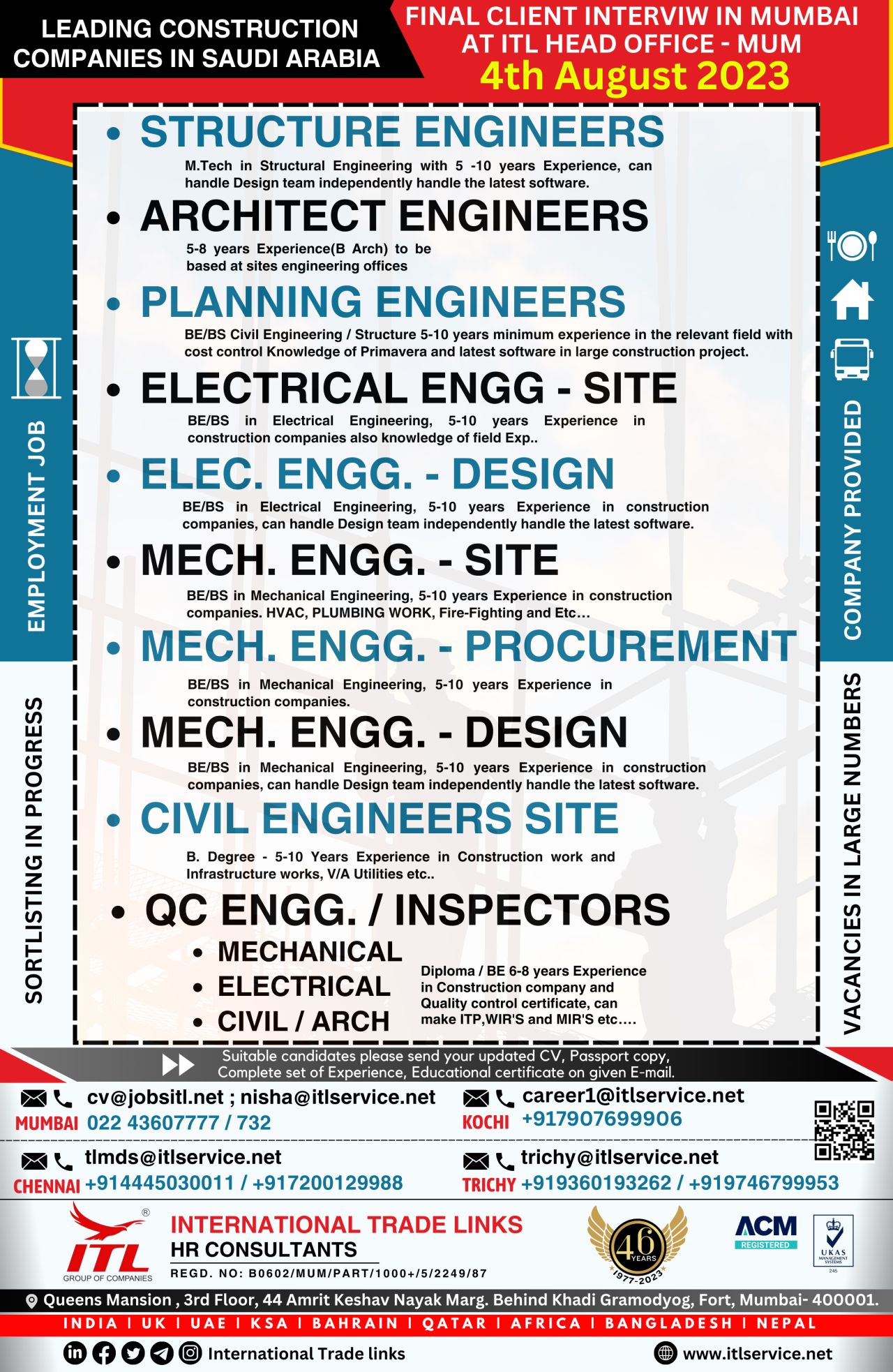 cv@jobsitl.net ; nisha@itlservice.net