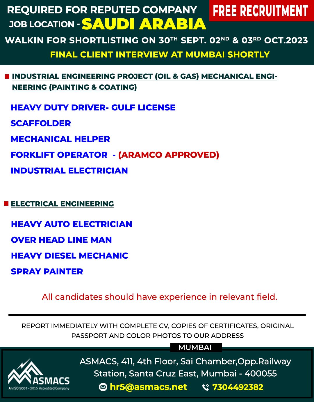 JOB LOCATION – SAUDI ARABIA