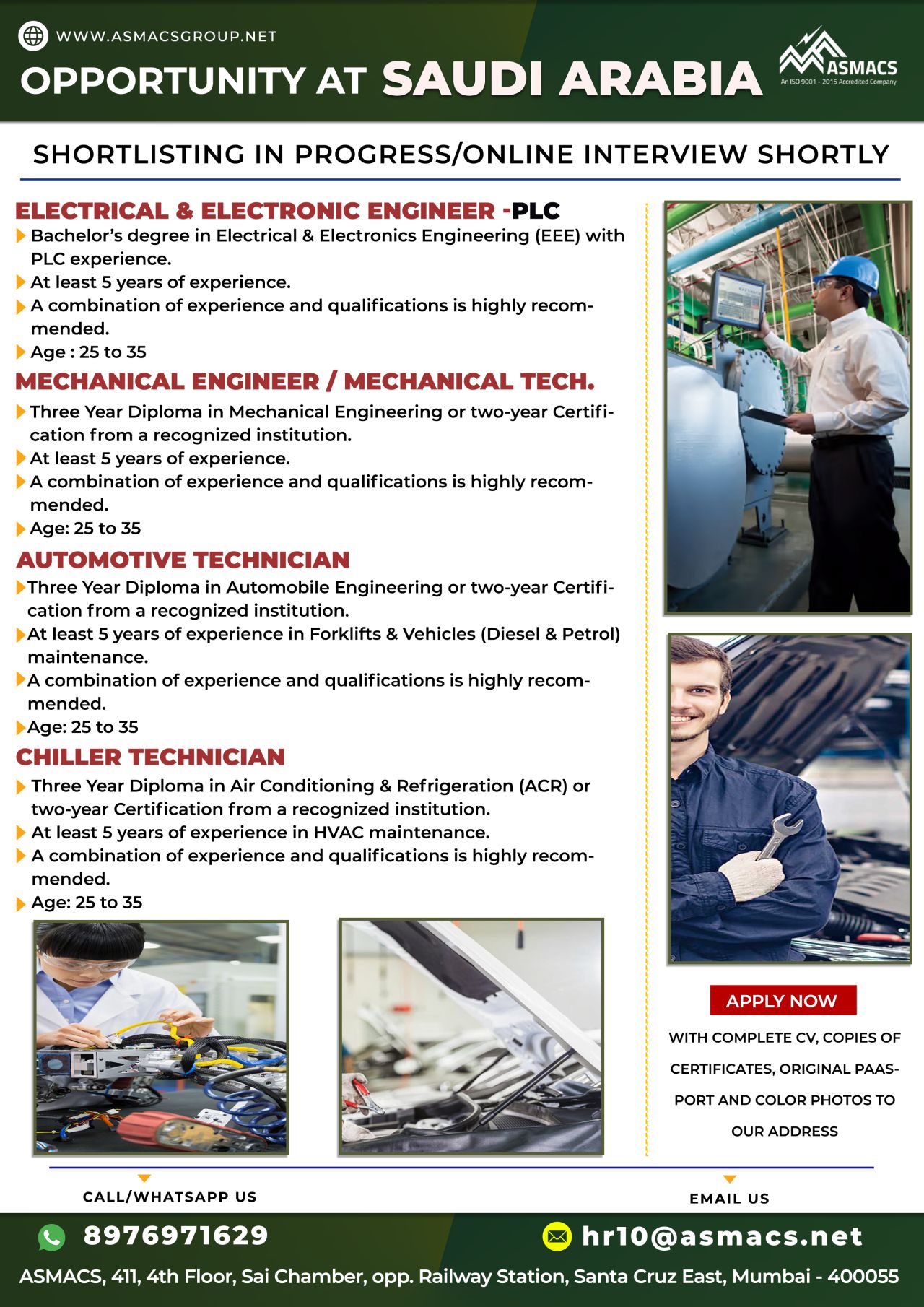 ▶At least 5 years of experience in Forklifts & Vehicles (Diesel & Petrol)