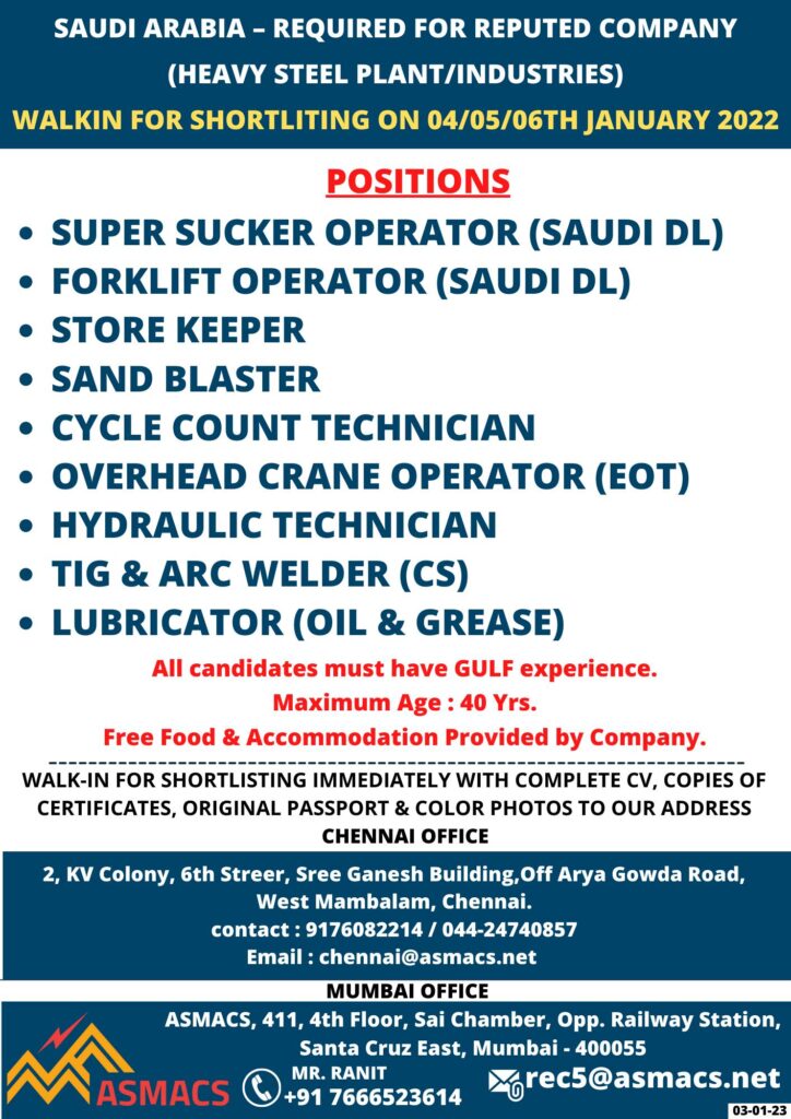SAUDI ARABIA – REQUIRED FOR REPUTED COMPANY