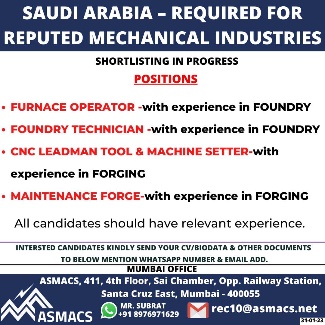 FOUNDRY TECHNICIAN -with experience in FOUNDRY