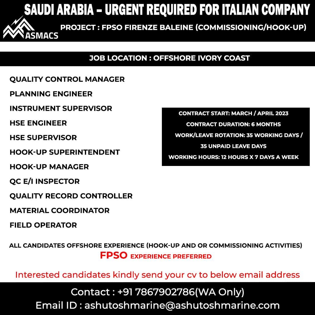 SAUDI ARABIA – URGENT REQUIRED FOR ITALIAN COMPANY