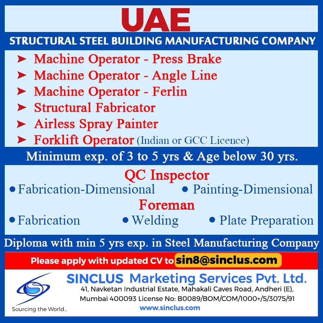 Diploma with min 5 yrs exp. in Steel Manufacturing Company