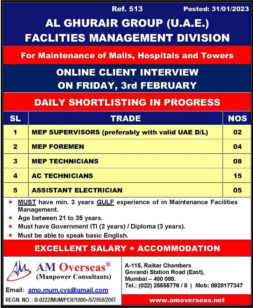 MEP SUPERVISORS (preferably with valid UAE OIL)