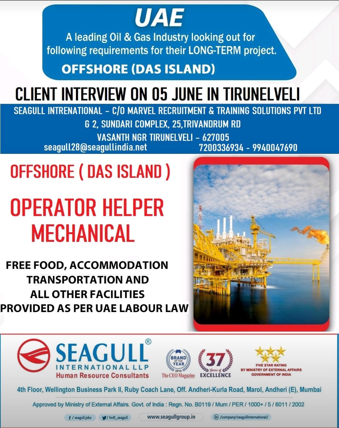 SEAGULL INTRENATIONAL – C/O MARVEL RECRUITMENT & TRAINING SOLUTIONS PVT LTD