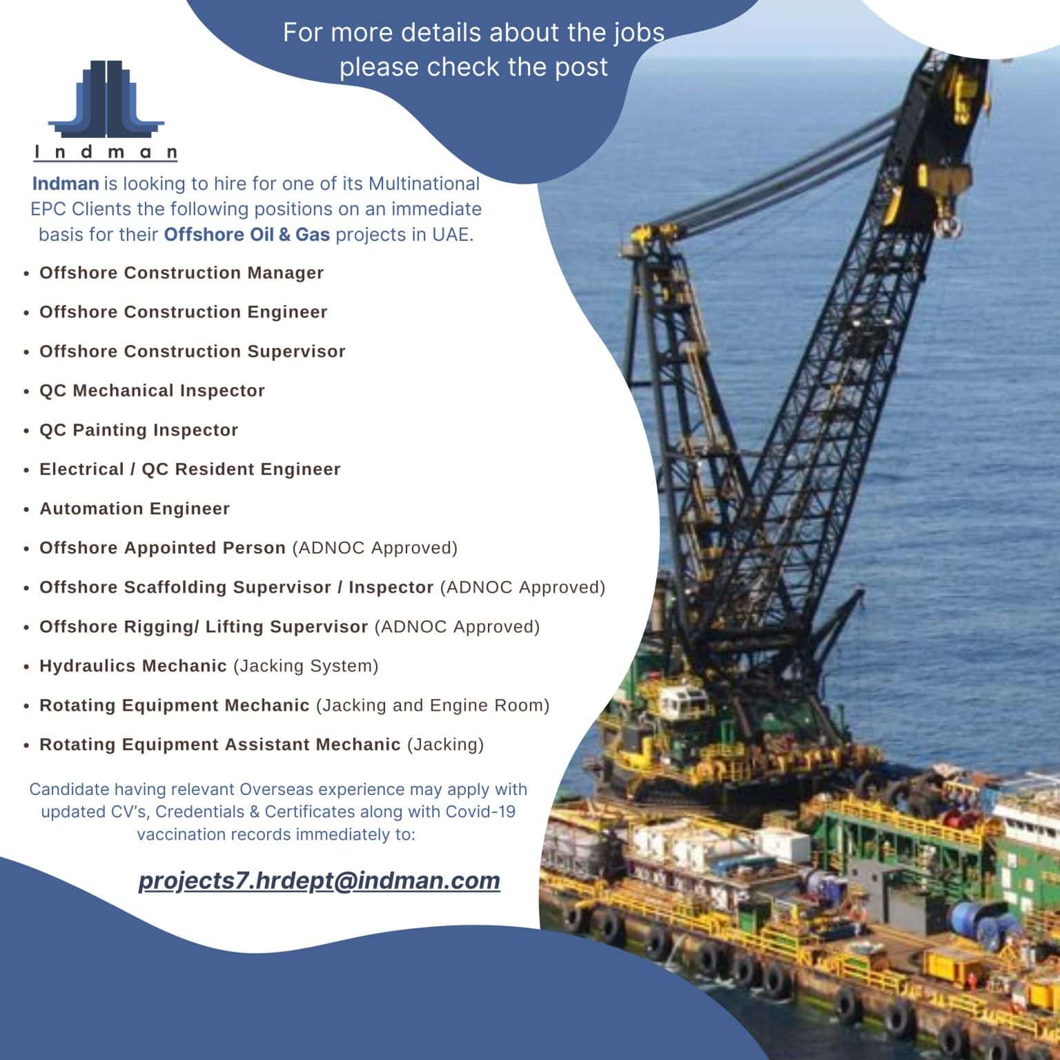 Indman is looking to hire for one of its Multinational EPC clients the following positions