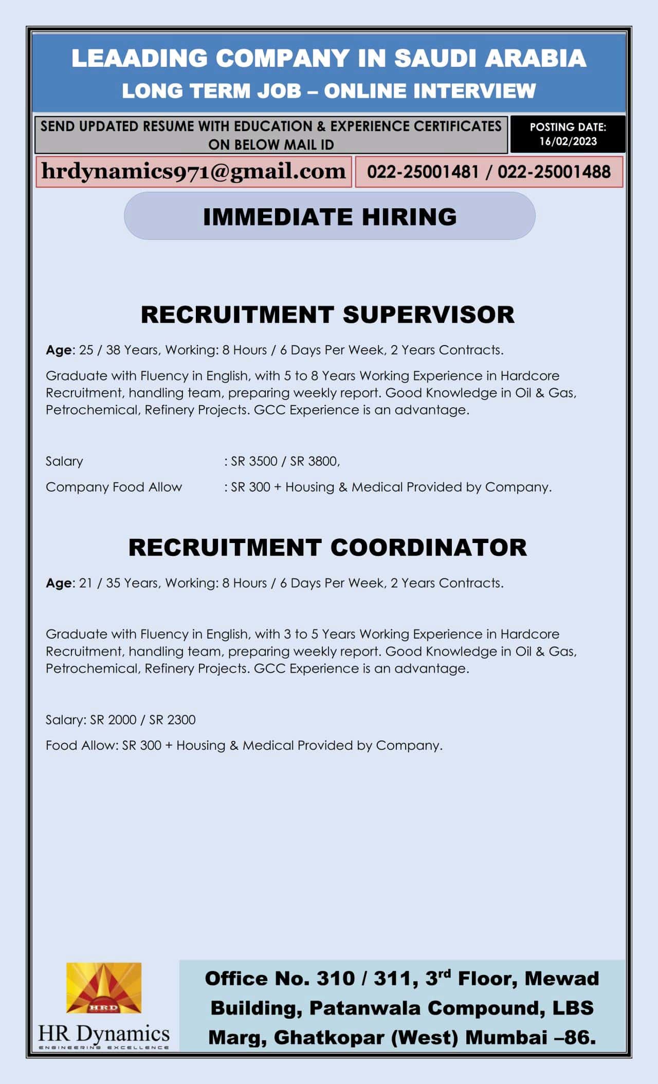hrdynamics971@gmail.com 022-25001481 / 022-25001488