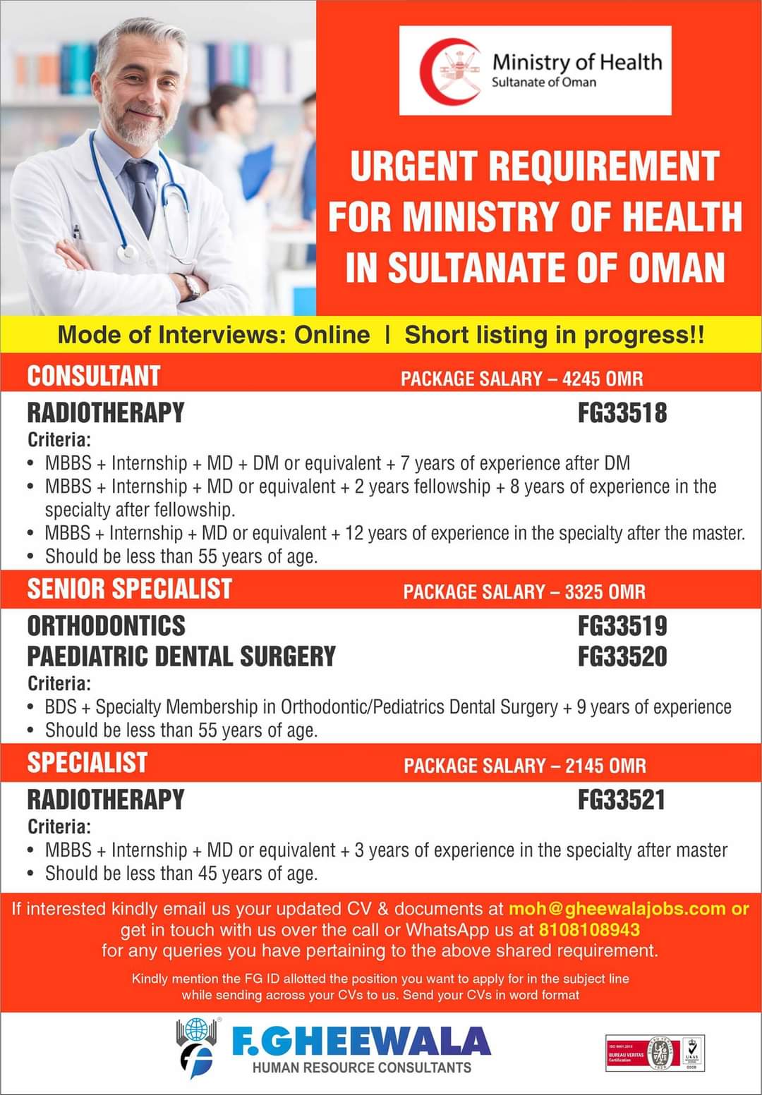 If interested kindly email us your updated CV & documents at moh@gheewalajobs.com or