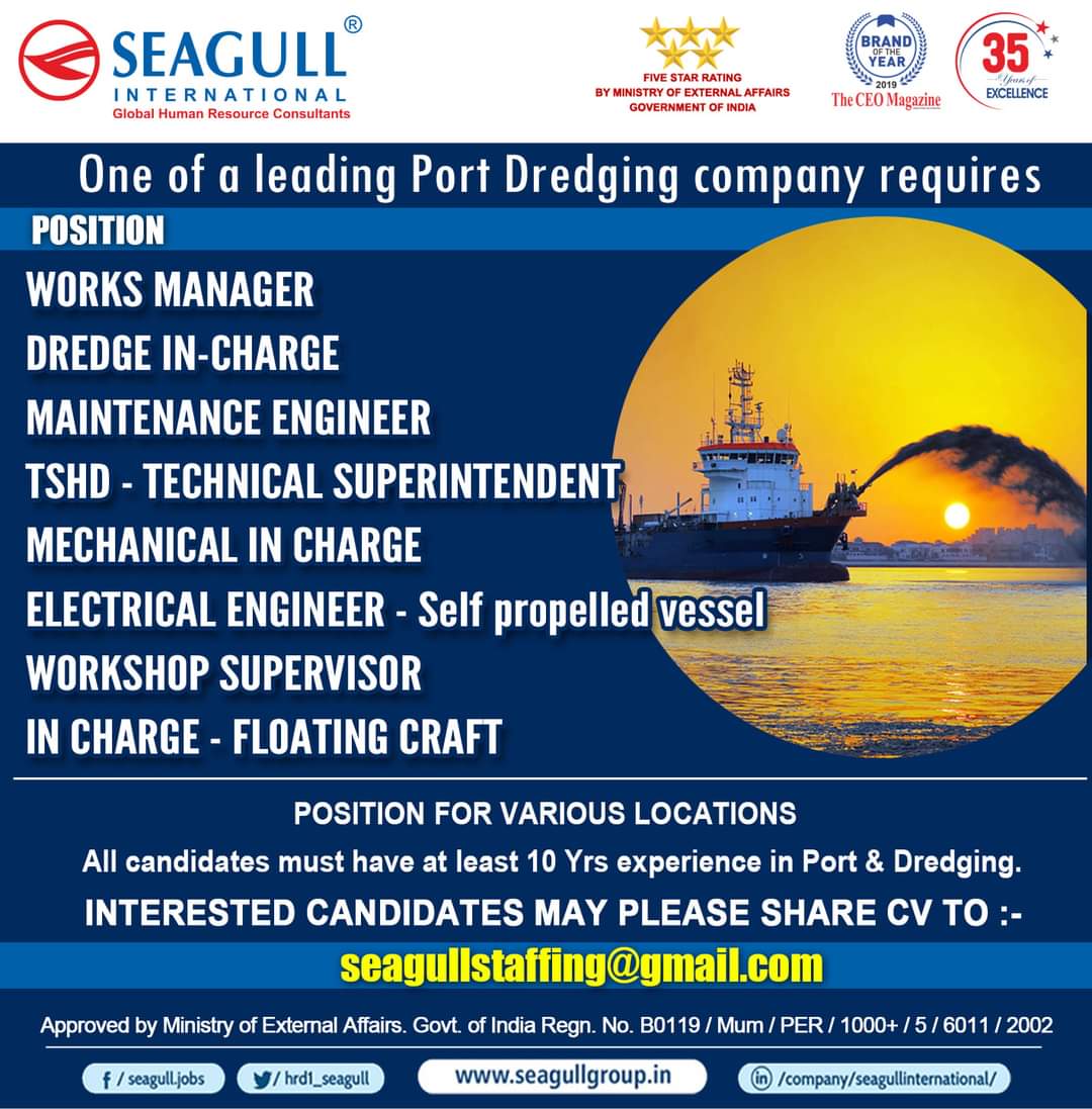 at least 10 Yrs experience in Port & Dredging. INTERESTED