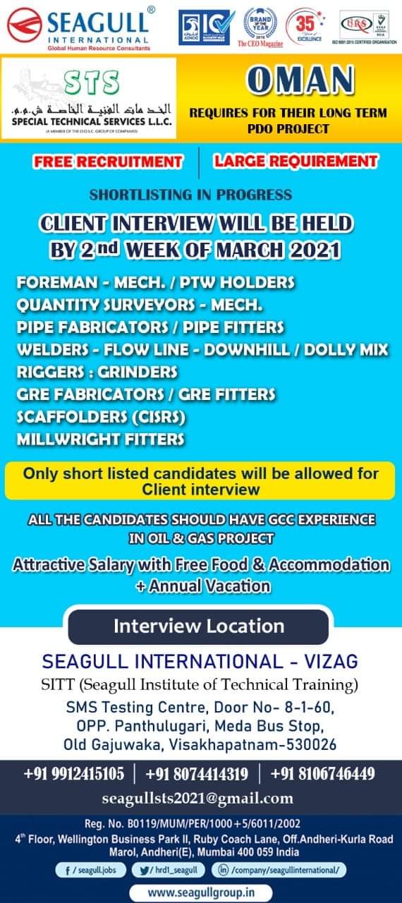 SPECIAL TECHNICAL SERVICES L.L.C.FREE RECRUITMENTOMANREQUIRES FOR THEIR LONG TERMPDO PROJECTI LARGE REQUIREMENTSHORTLISTING IN PROGRESSCLIENT INTERVIEW WILL BE HELDBY WEEK OE …