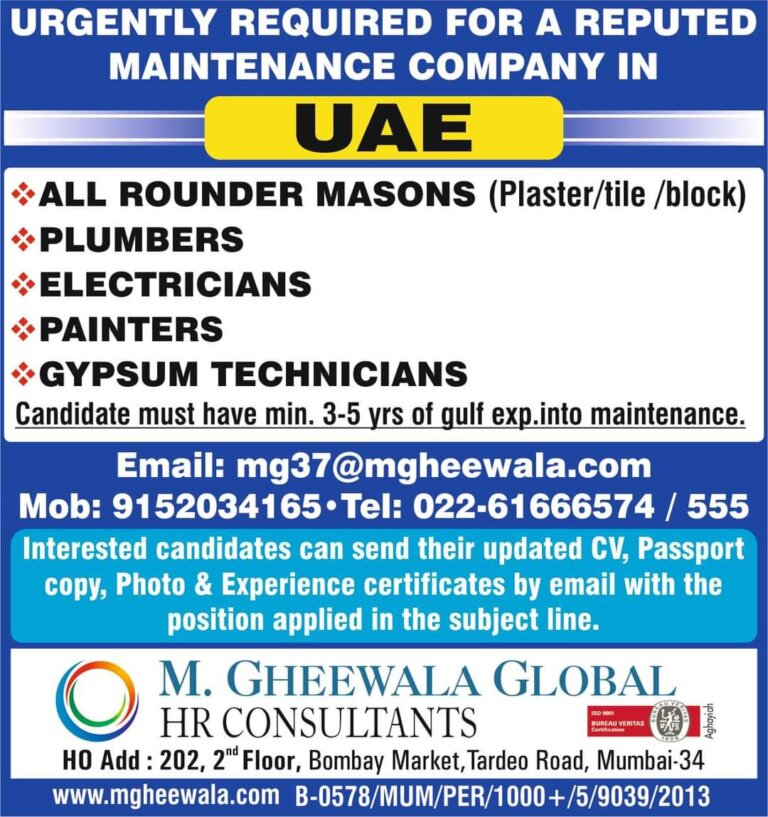 URGENT REQUIREMENT FORA LEADING KOREAN COMPANYASMACSLOCATIONQATARSHORTLISTING IN PROGRESSVISIT OUR MUMBAI OFFICEPOSITIONS WORKSHOP CLERKDIESEL MECHANIC AUTO ELECTRICIAN LATHE MACHINE OPERATOR HEAVY …