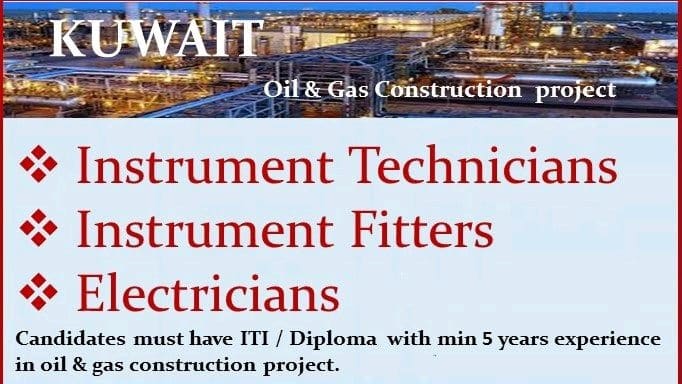Instrument TechniciansInstrument FittersElectriciansCandidates must have ITI / Diploma with nmin 5 years experiencein oil & gas construction project.Please send your …