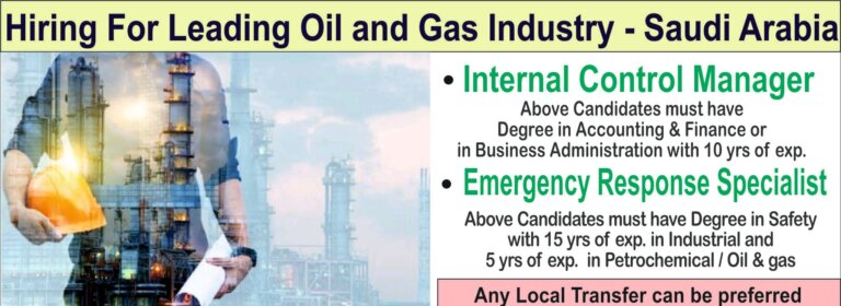 Hiring For Leading Oil and Gas Industry – Saudi ArabiaInternal Control ManagerAbove Candidates must haveDegree in Accounting & Finance orin …