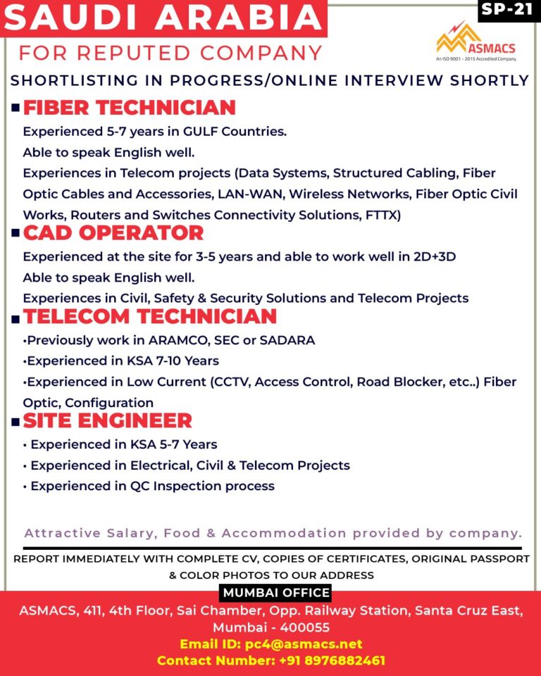 SAUDI ARABIAREQUIRED FOR REPUTED COMPANYLOOKING FOR BELOW JOB POSITIONSQA/QC SUPERVISOR■ QA/QC INSTRUMENTATION■ PROCUREMENT QC SUPERVISOR■ PROJECT ENGINEER■ QA/QC CIVIL■ QA/QC …
