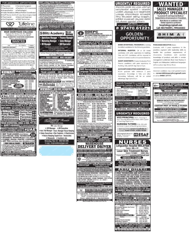 There are a lot of vacancies published in today’s e-paper. You may view & download those papers. Find your desire …