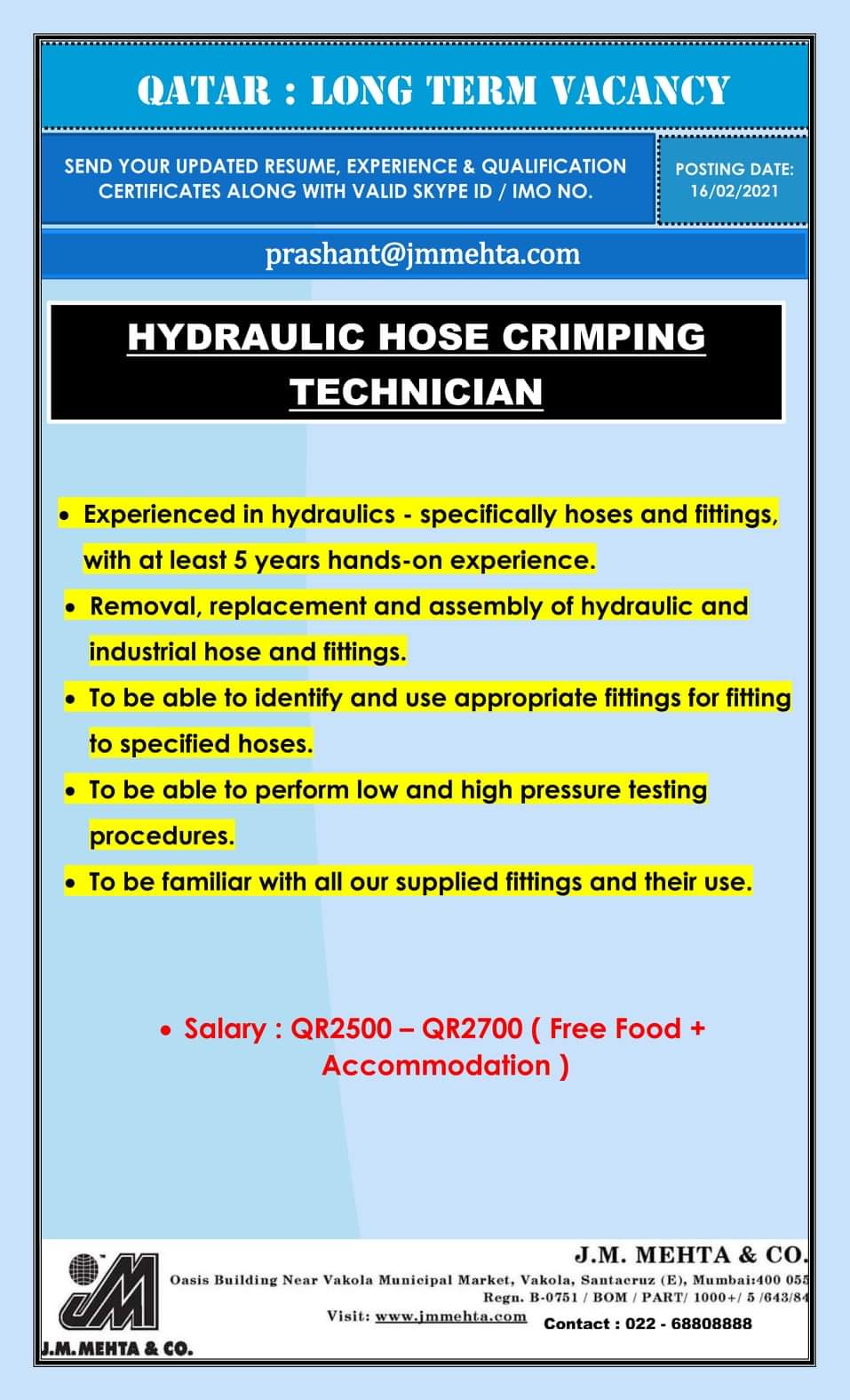 SEND YOUR UPDATED RESUME, EXPERIENCE & QUALIFICATION