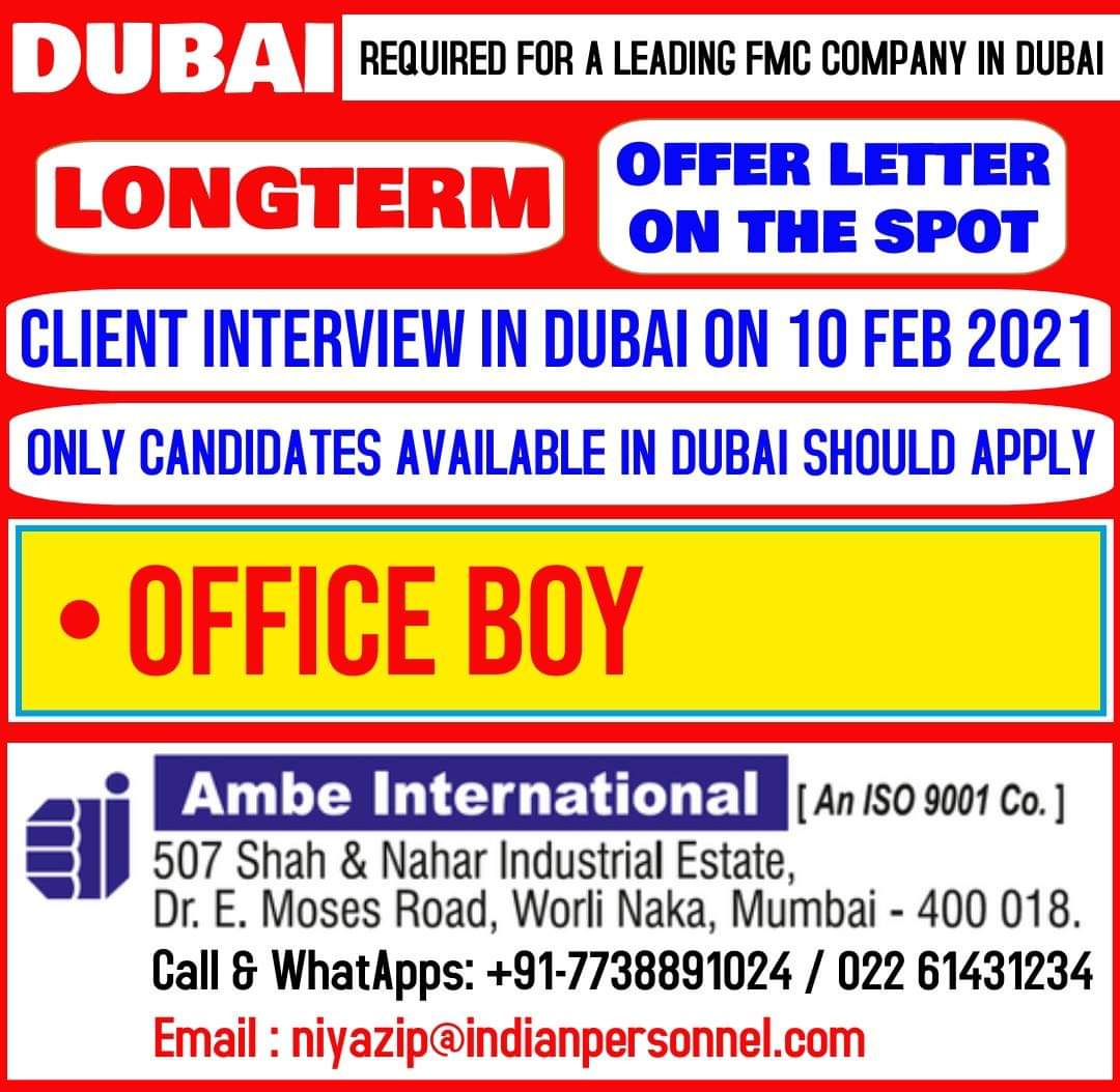 ONLY CANDIDATES AVAILABLE IN DUBAI SHOULD APPLY