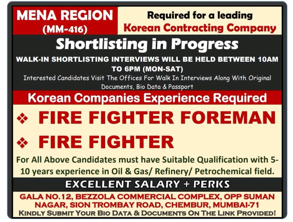 WALK-IN SHORTLISTING INTERVIEWS WILL BE HELD BETWEEN 10AM