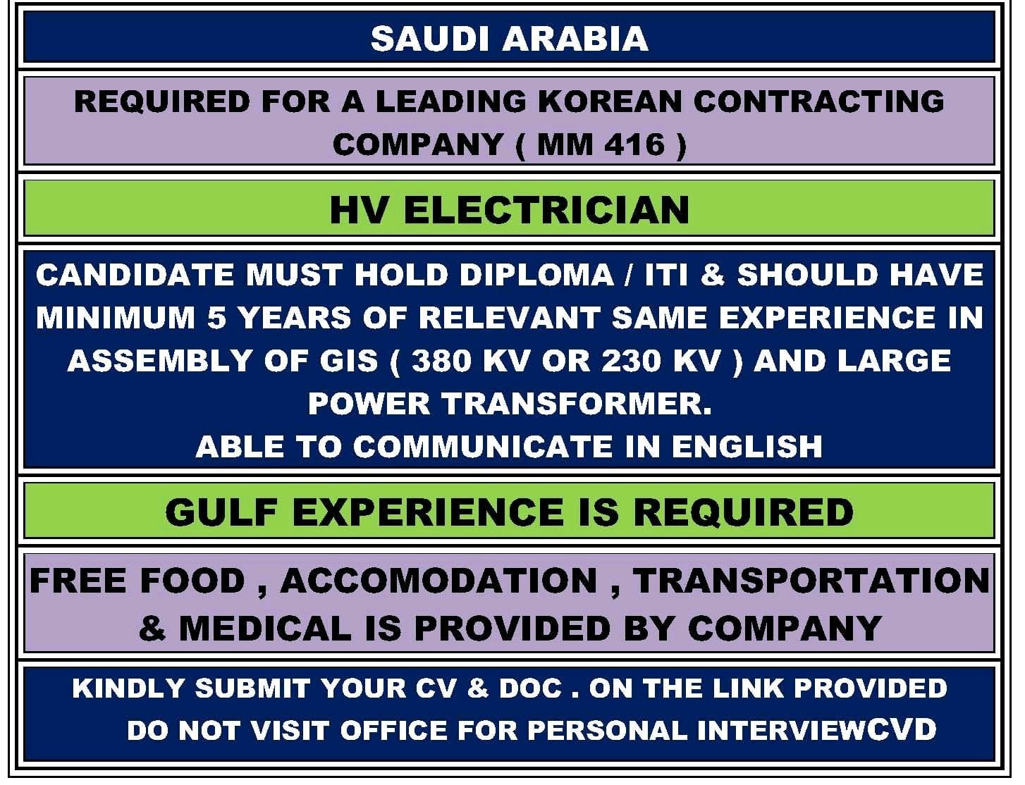 COMPANY (MM 416 ) HV ELECTRICIAN Apply here
