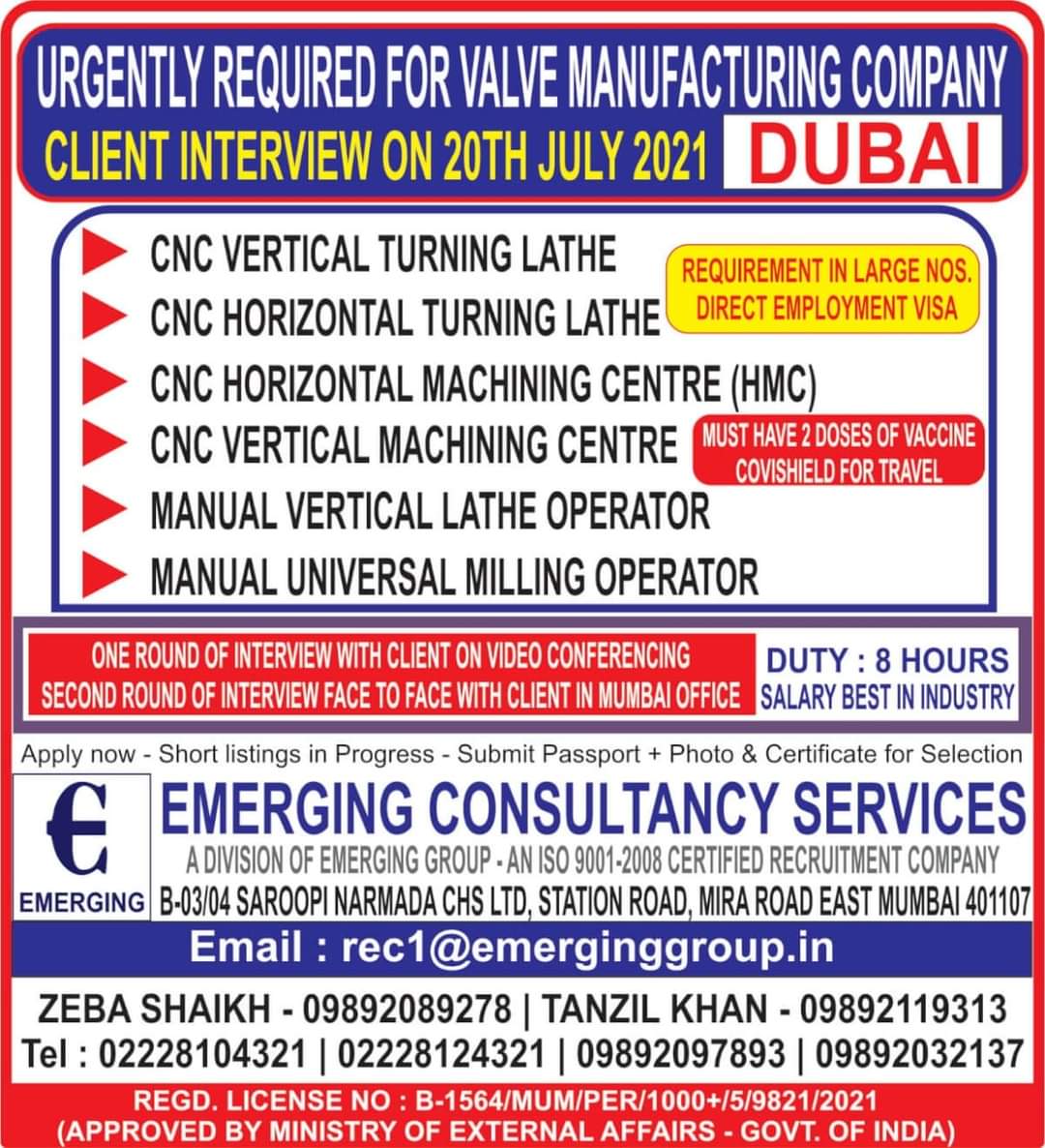 CNC HORIZONTAL TURNING LATHE DIRECT EMPLOYMENT VISA