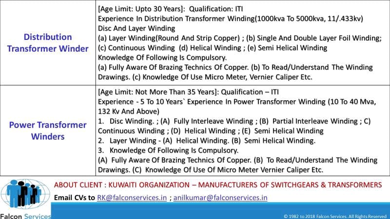 Experience – 5 To 10 Years’ Experience In Power Transformer Winding (10 To 40 Mva,