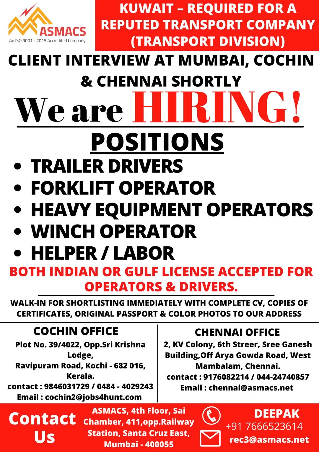 WALK-IN FOR SHORTLISTING IMMEDIATELY WITH COMPLETE CV, COPIES OF