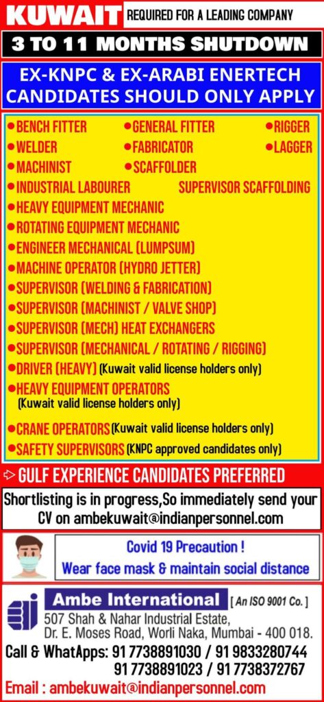 CV on ambekuwait@indianpersonnel.com