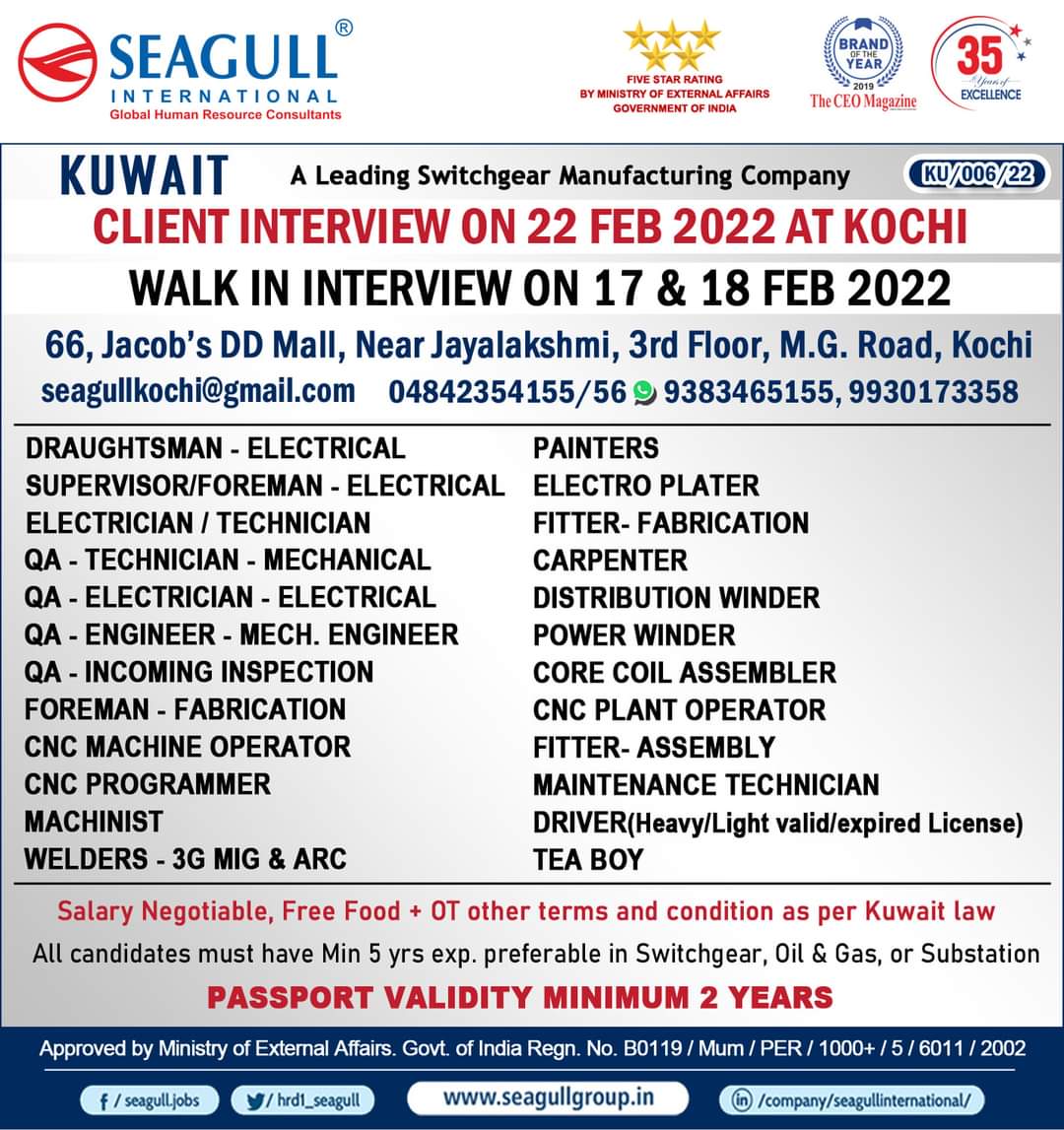 WALK IN INTERVIEW ON 17 & 18 FEB 2022 66, Jacob’s DD Mall,