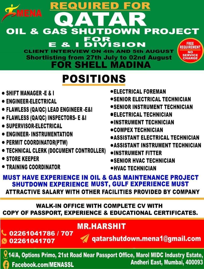 MUST HAVE EXPERIENCE IN OIL & GAS MAINTENANCE PROJECT