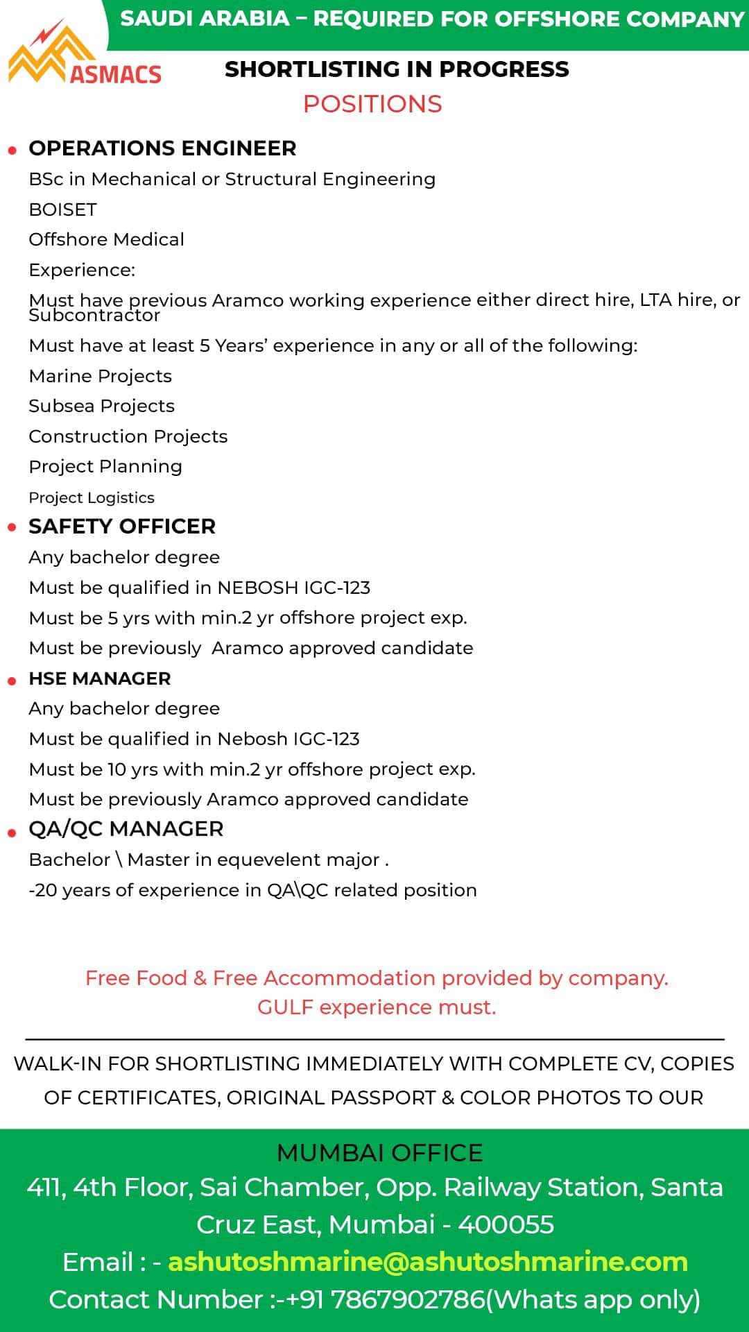 Must be previously Aramco approved candidate