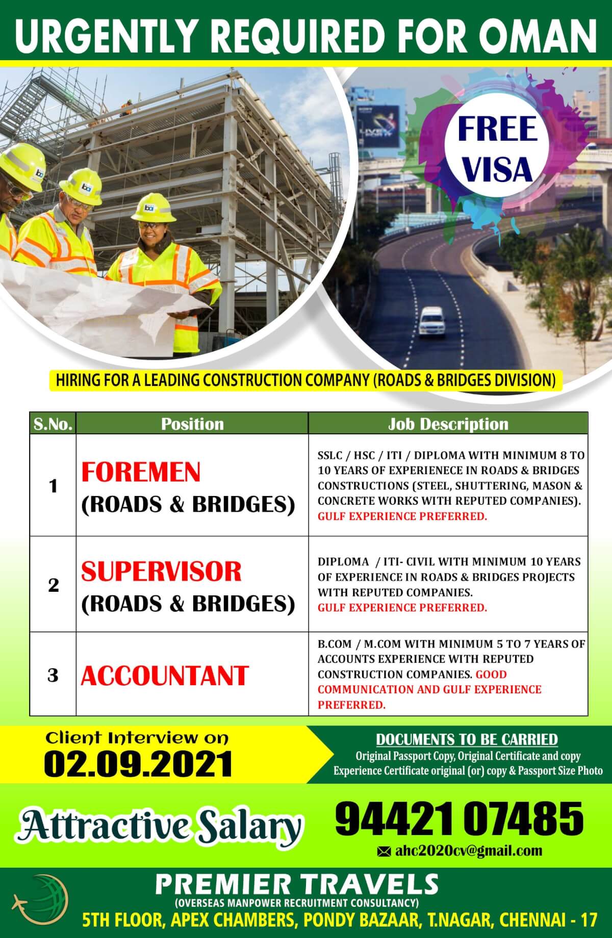 HIRING FOR A LEADING CONSTRUCTION COMPANY (ROADS & BRIDGES DIVISION)