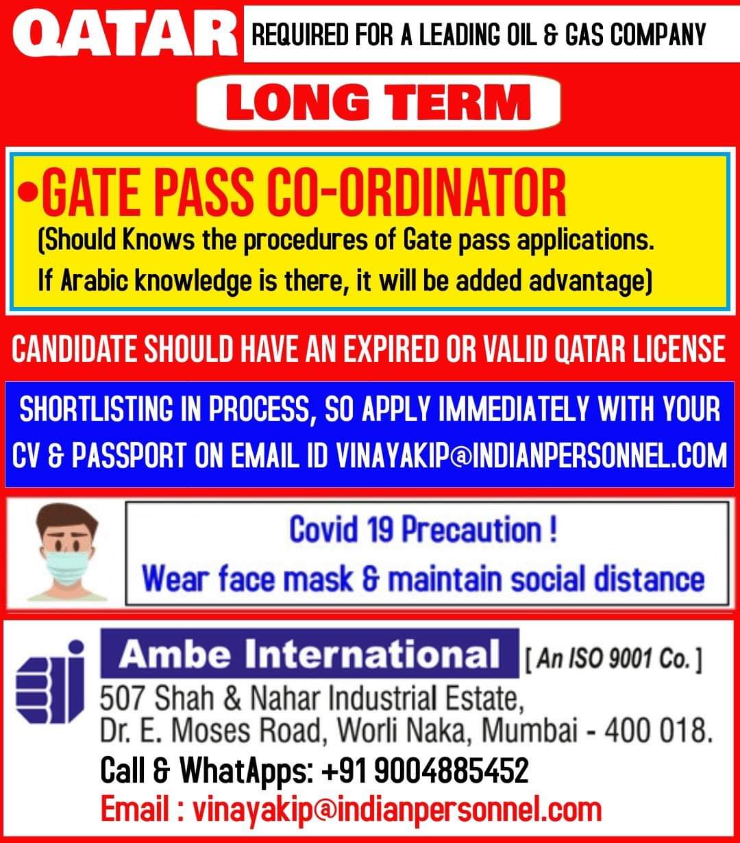 LONG TERM •GATE PASS COORDINATOR (Should Knows the procedures of Gate pass applications.