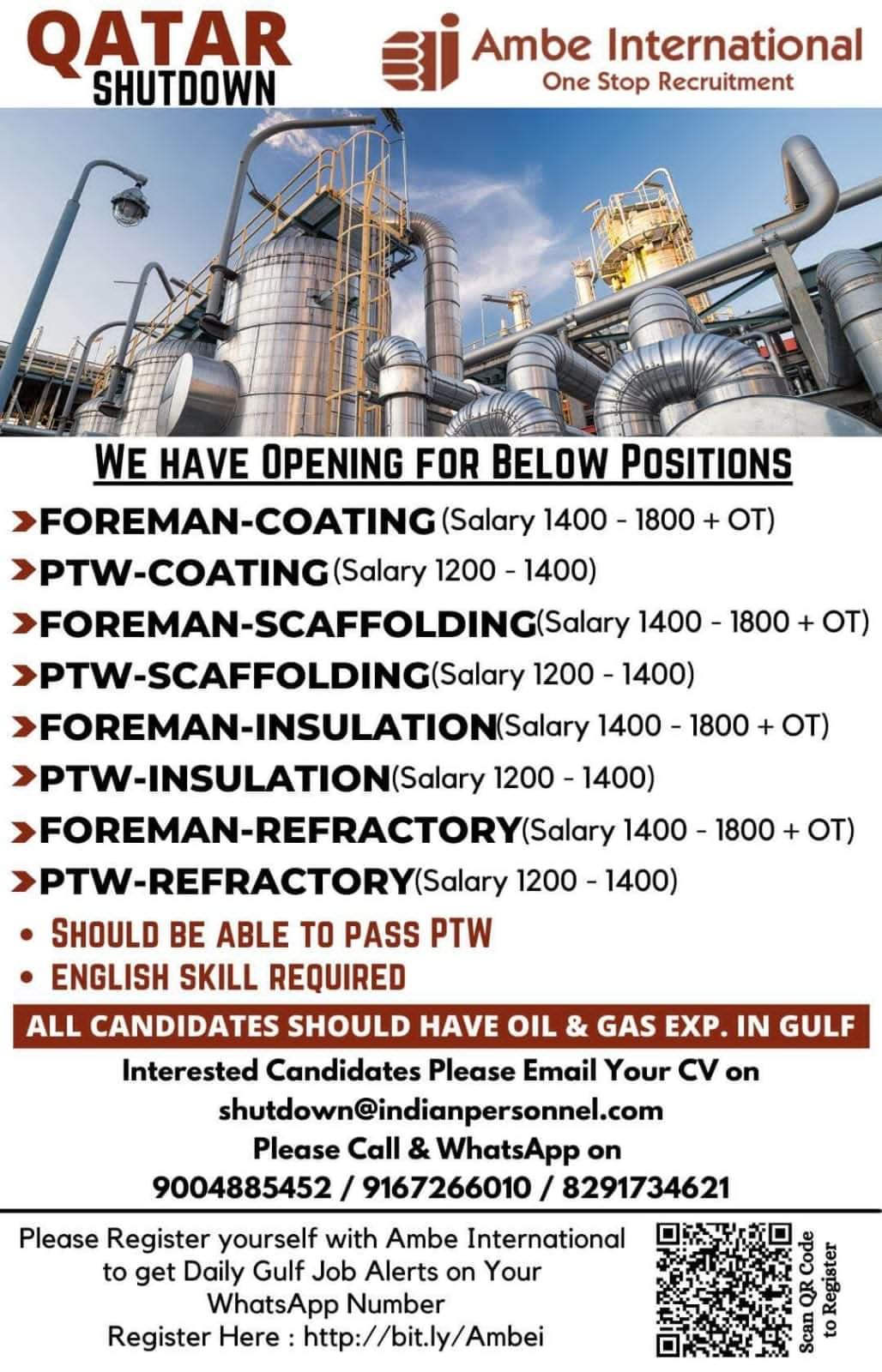 FOREMAN-REFRACTORY(Salary 1400 – 1800 + OT)