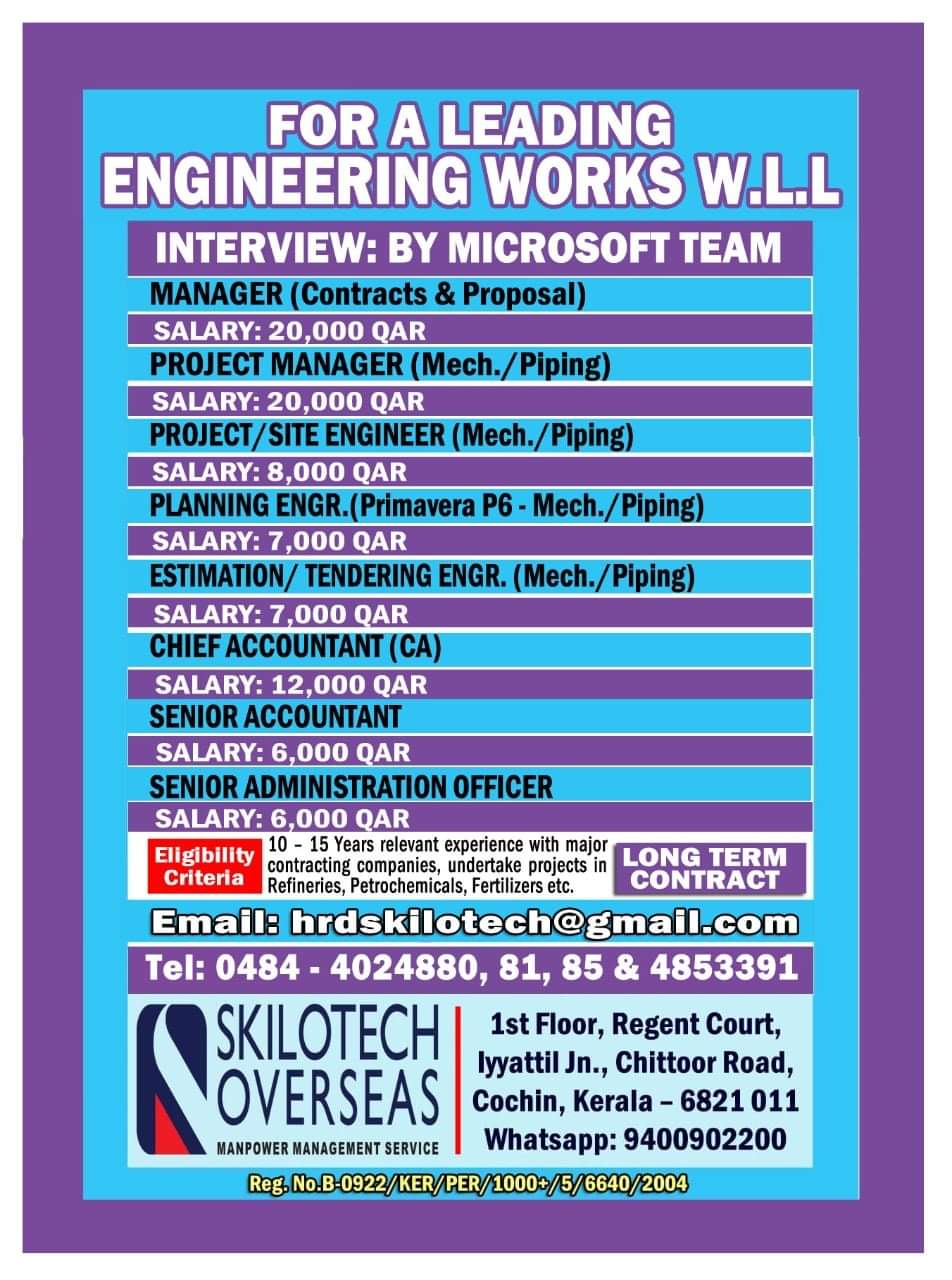 PLANNING ENGR.(Primavera P6 – Mech./Piping)