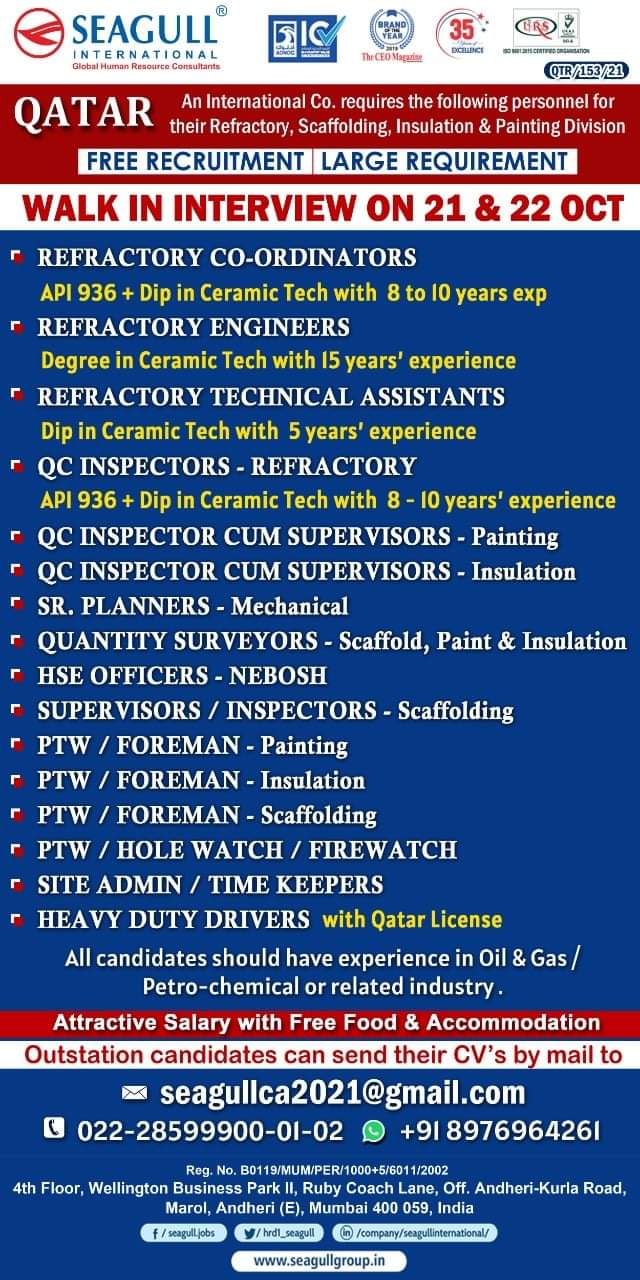 QC INSPECTOR CUM SUPERVISORS – Painting