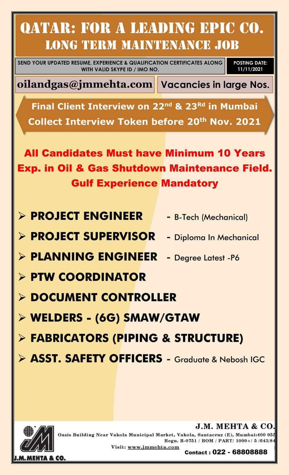 oilandgas@jmmehta.com Vacancies in large Nos.