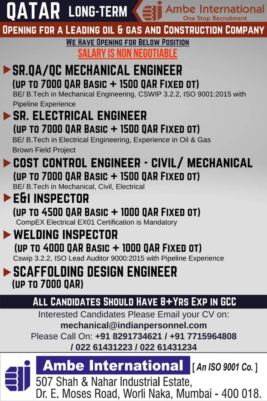 BE/ B.Tech in Electrical Engineering, Experience in Oil & Gas