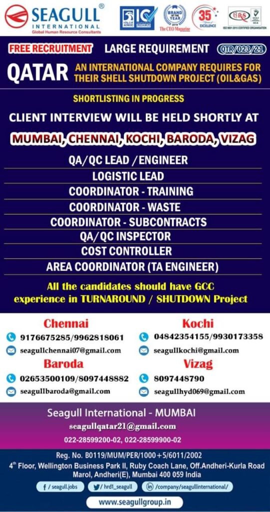 All the candidates should have GCC experience in TURNAROUND / SHUTDOWN Project