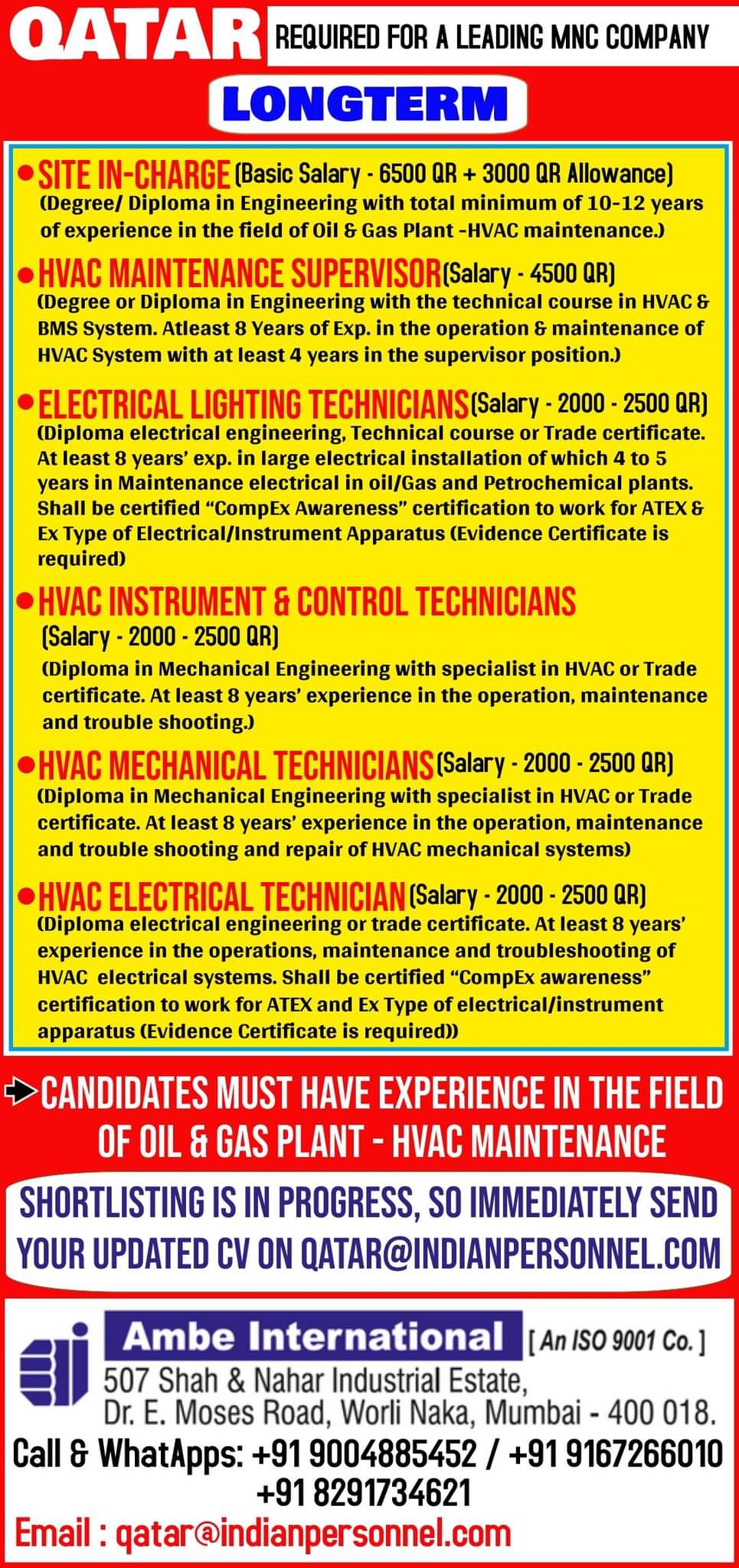 of experience in the field of Oil & Gas Plant -HVAC maintenance.)