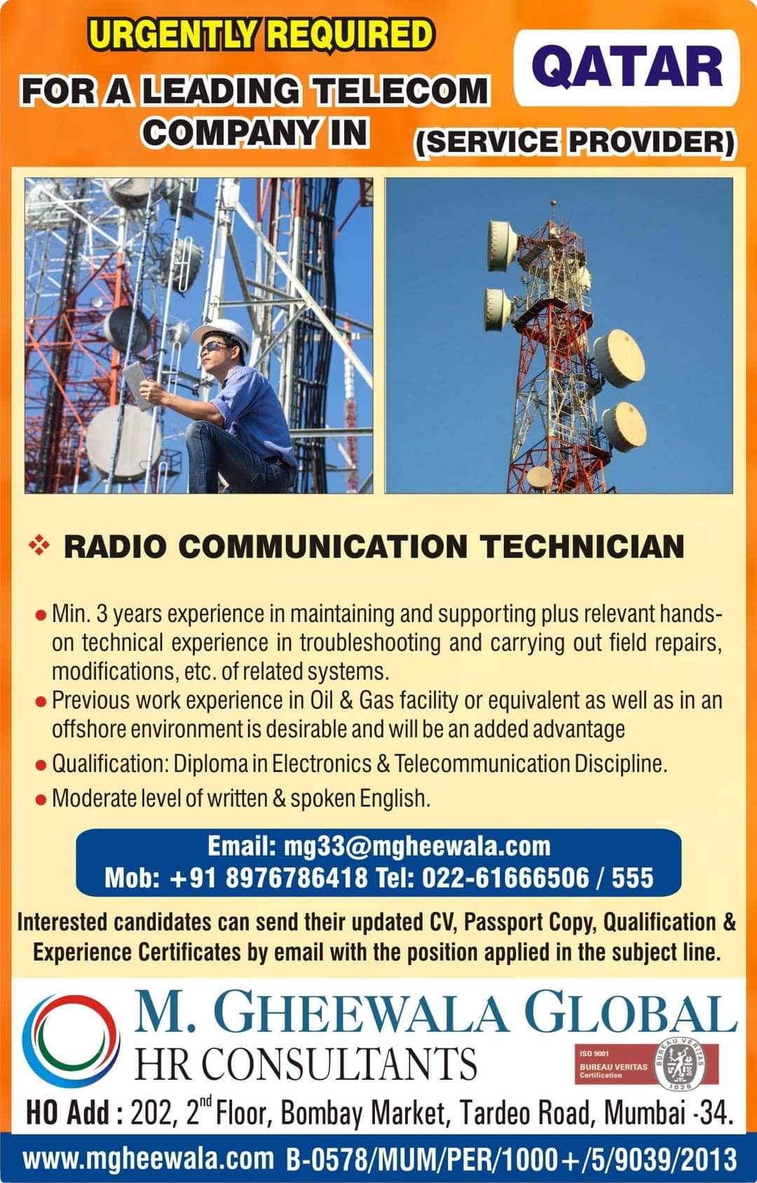 o Qualification: Diploma in Electronics & Telecommunication Discipline.