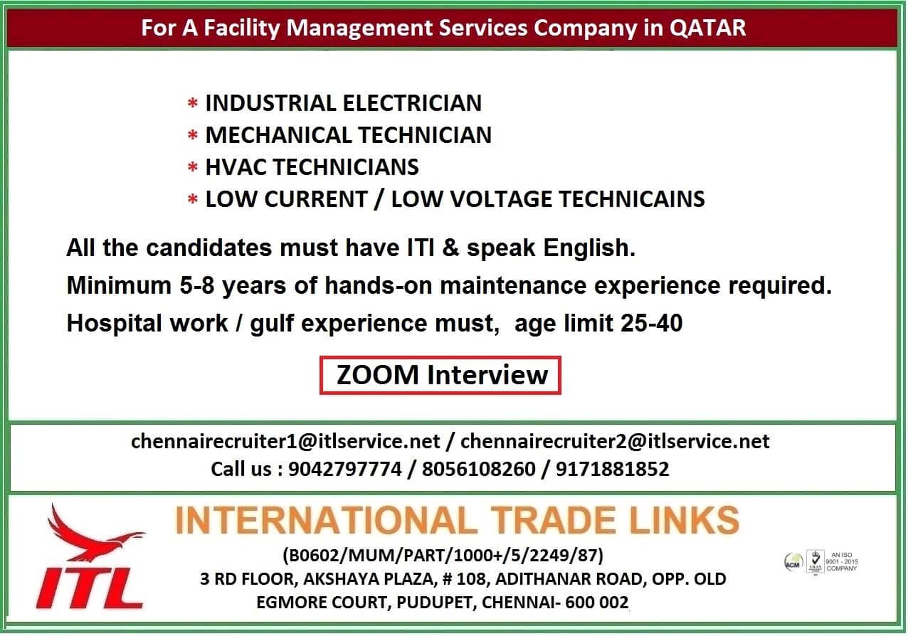 All the candidates must have ITI & speak English.