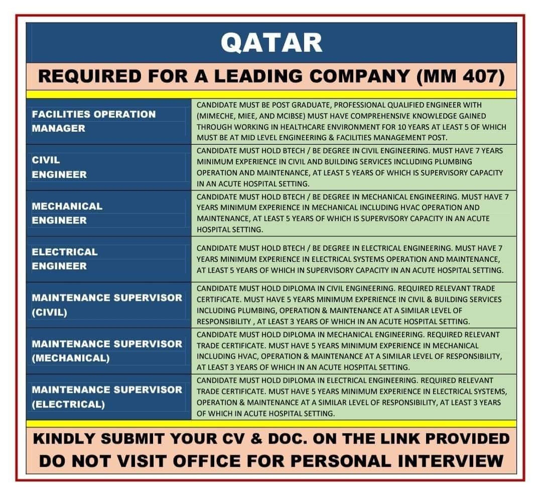 KINDLY SUBMIT YOUR CV & DOC. ON THE LINK PROVIDED