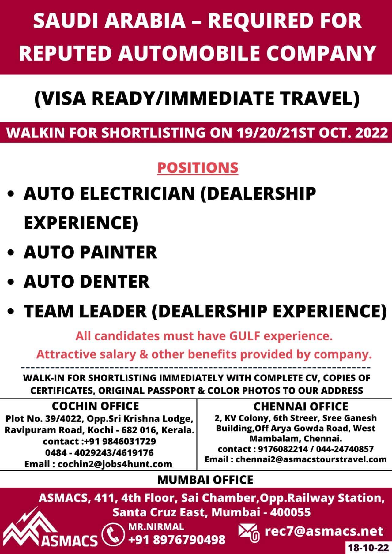 WALKIN FOR SHORTLISTING ON 19120121ST OCT. 2022