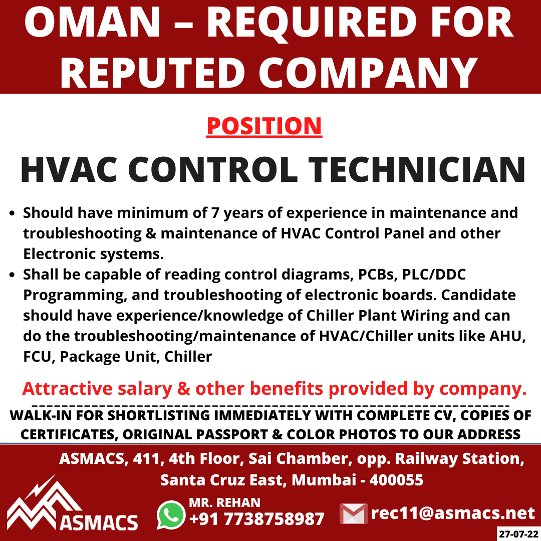 • Shall be capable of reading control diagrams, PCBs, PLC/DDC