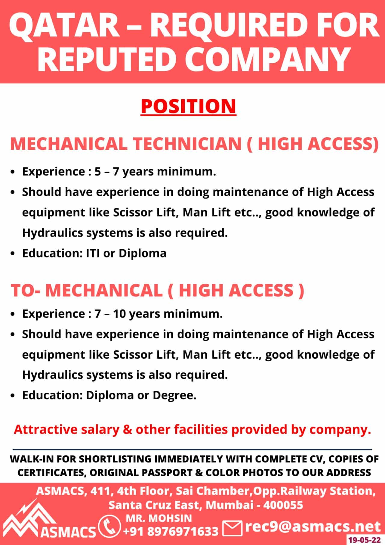 MECHANICAL TECHNICIAN ( HIGH ACCESS)