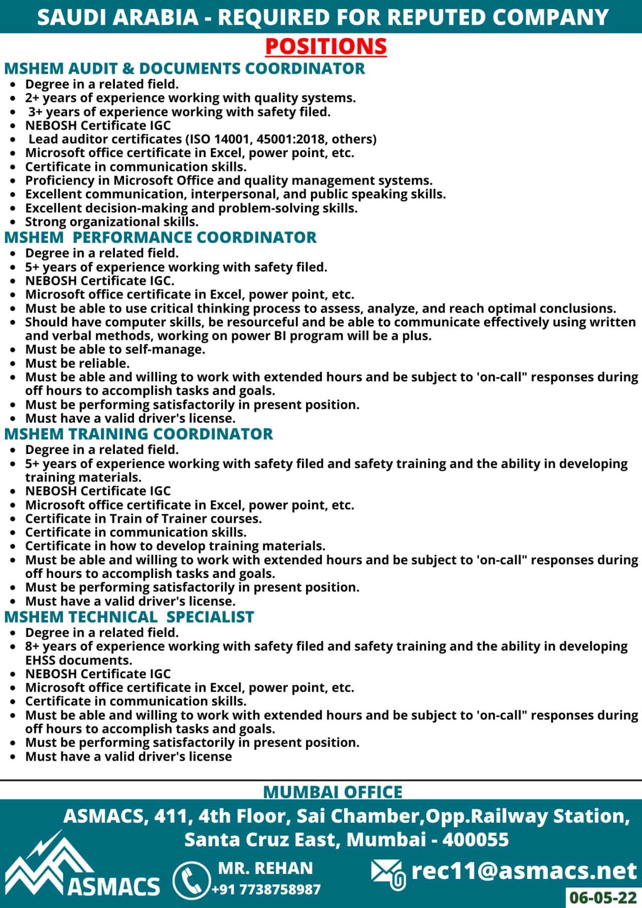 SAUDI ARABIA – REQUIRED FOR REPUTED COMPANY