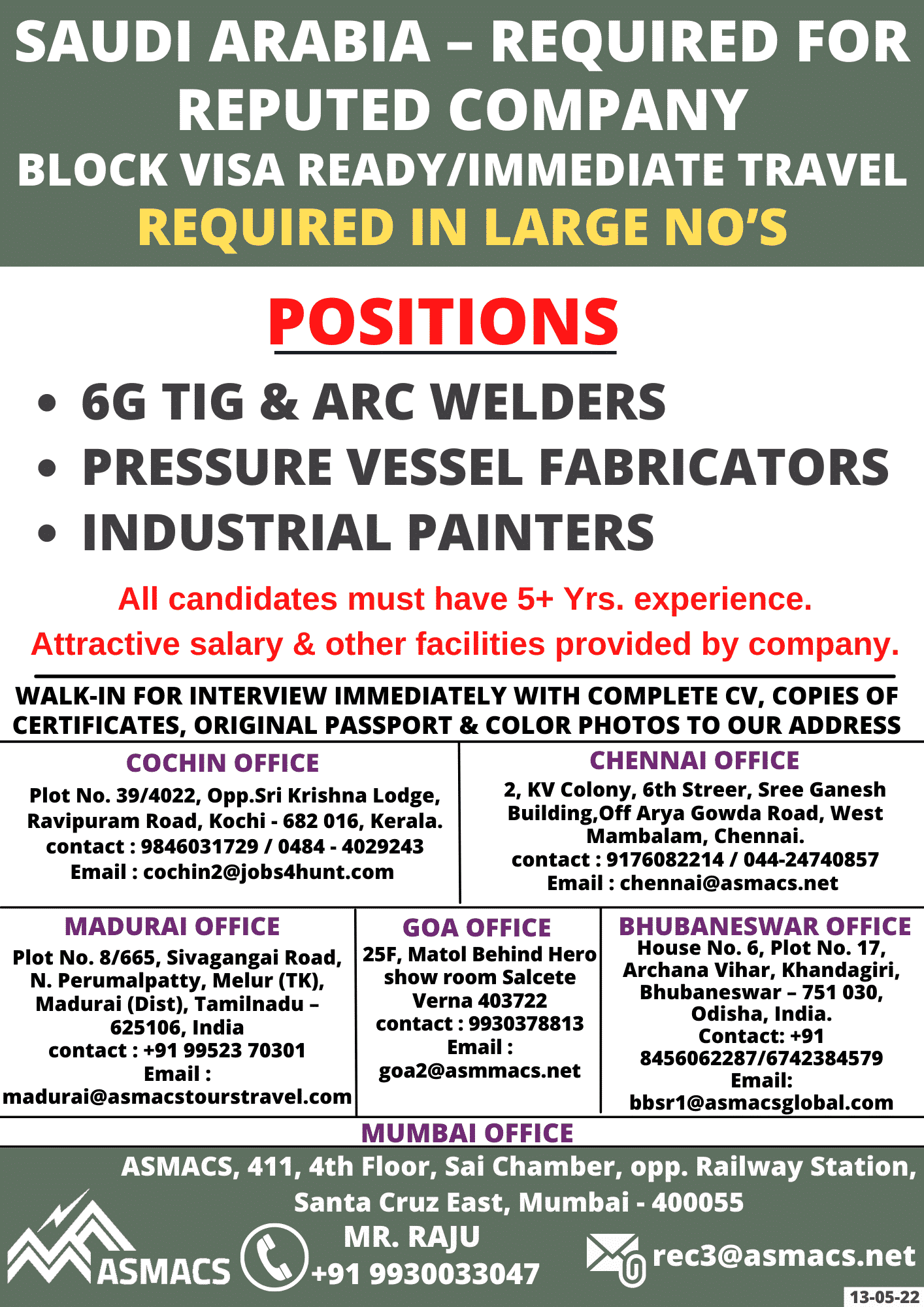 WALK-IN FOR INTERVIEW IMMEDIATELY WITH COMPLETE CV, COPIES OF