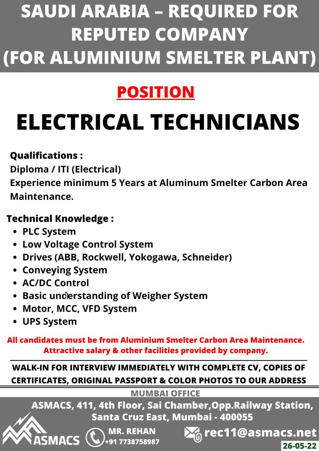 Experience minimum 5 Years at Aluminum Smelter Carbon Area
