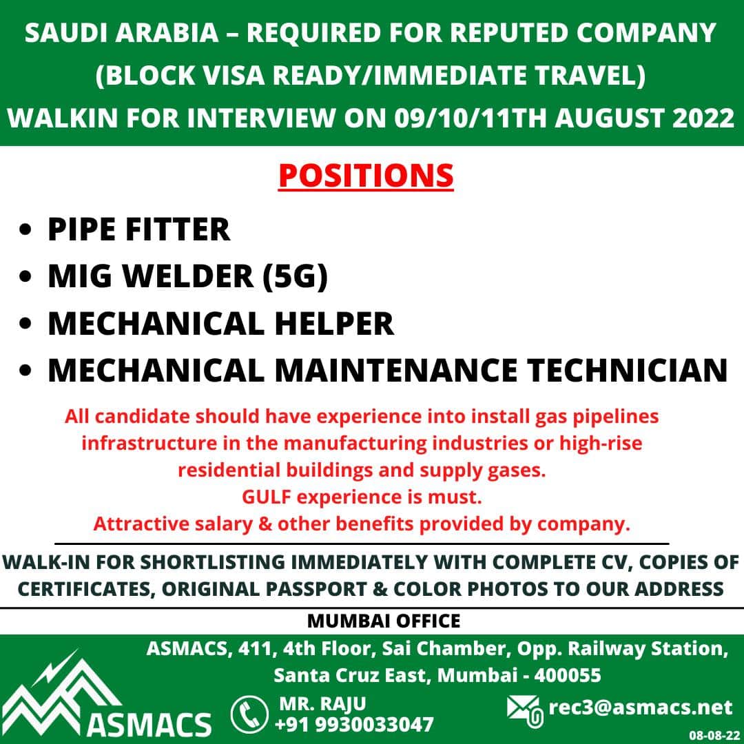 SAUDI ARABIA – REQUIRED FOR REPUTED COMPANY