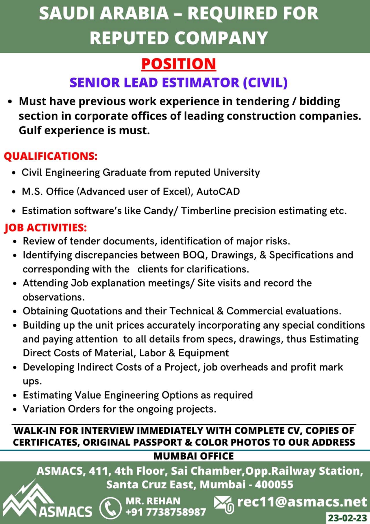 SENIOR LEAD ESTIMATOR (CIVIL)